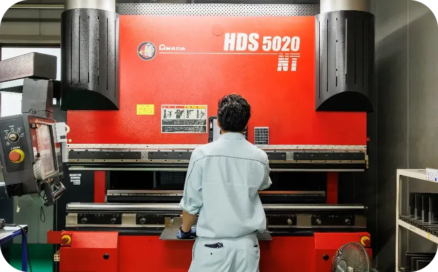 弊社のHDS-5020NTでは、モジュラーツーリングシステムを取り入れており、スムーズな金型変更を行い簡単なL曲げから複雑な曲げまで幅広く曲げることが出来ます。